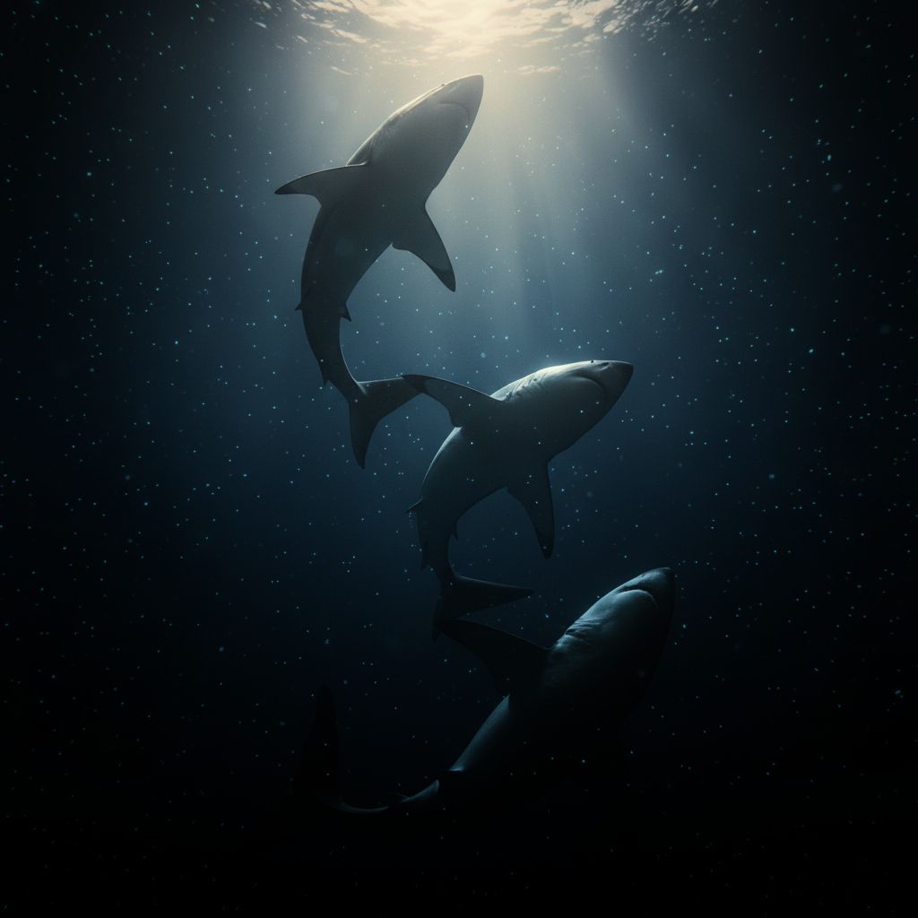 Why? The story deepens here. Perhaps it is courtship. Imagine the loneliest hunters in the Ocean engaging in an ancient speed-dating ritual carved by evolution and obsession in some desperate attempt to find and be found. A soaring, plunging dance cracking the vast blue silence as sharks send chemical calls in the dark-long-distance lovers performing a shimmering, vertical embrace. Call it speed dating in three dimensions, a ballroom waltz in darkness. Each dive a signal, each ascent a flare in the black. A ritual older than mankind, acted out again and again with an urgency we cannot fathom.