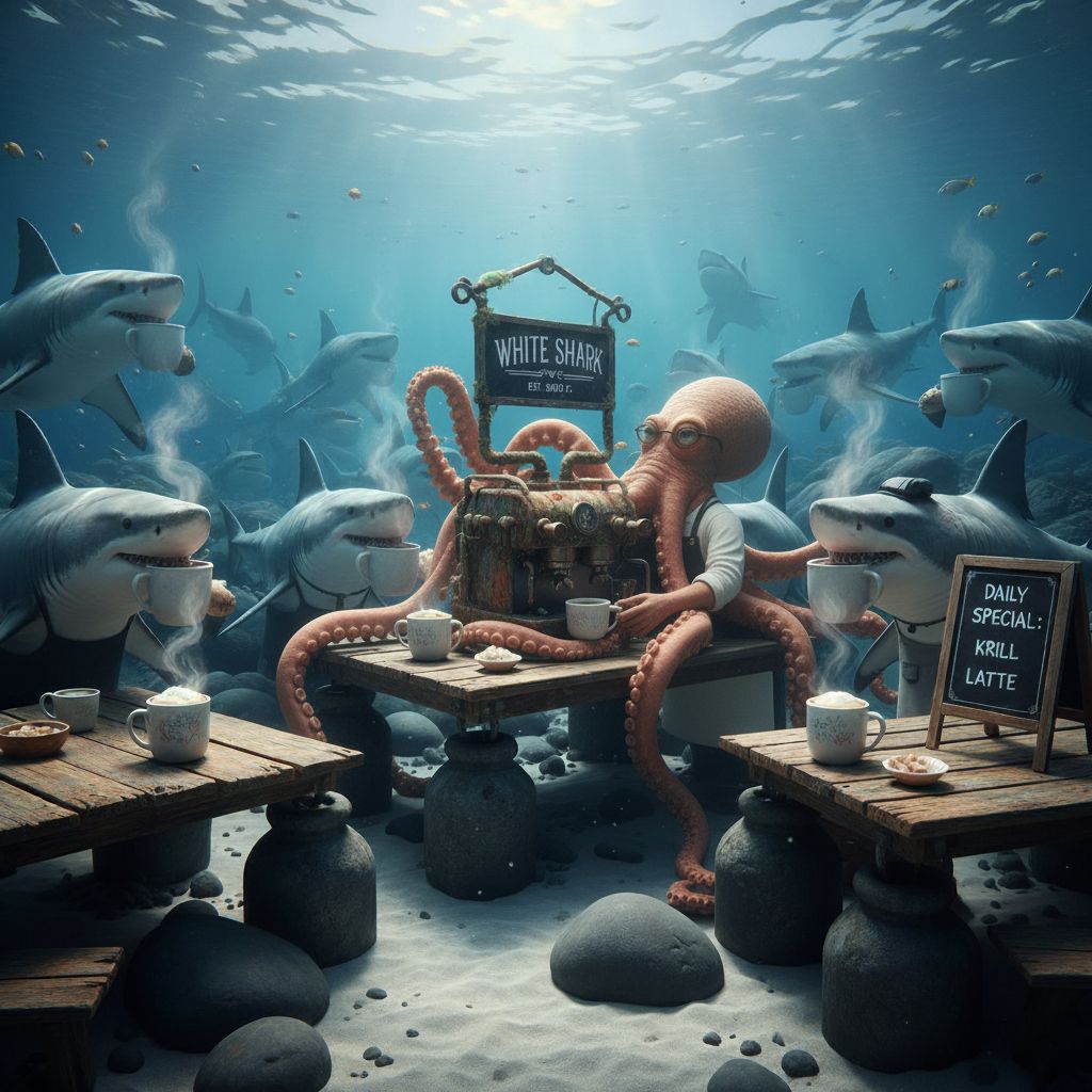 A set of numbers, a coordinate stamped into oblivion. But for those who know, those who listen to the whispers clawed back from the abyss by the fragile instruments of science, this is no patch of forsaken Ocean. It is the White Shark Café; an otherworldly convergence, a place stranger and more mysterious than any palace, temple, or shrine built by human hands.